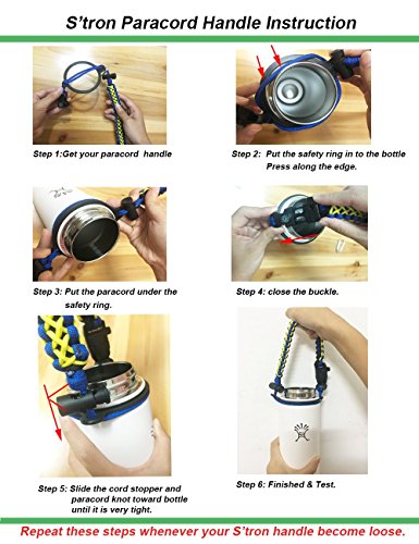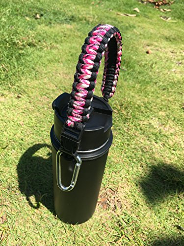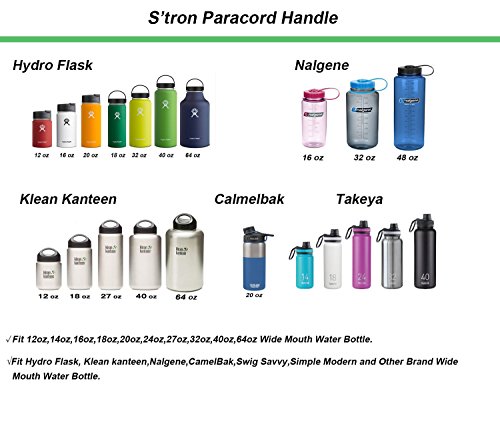 S'tron Paracord Handle Holder for Hydro Flask, Wide Mouth Water Bottle Carrier Set Survival Strap Cord for Nalgene CamelBak 12oz - 64 oz With Safety Ring and Carabiner
