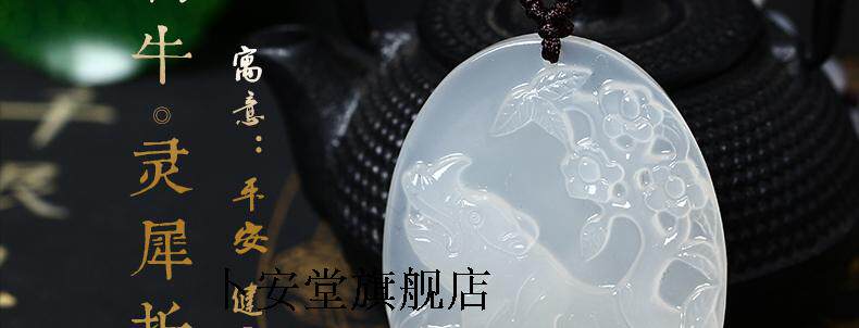 开光12生肖属蛇吉祥物灵牛保岁白玉髓吊坠平安项坠礼品