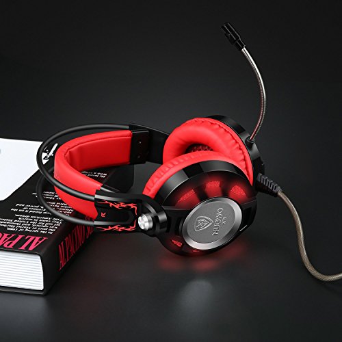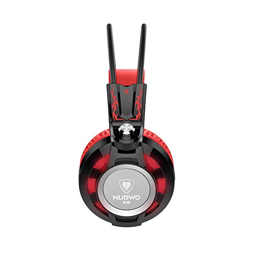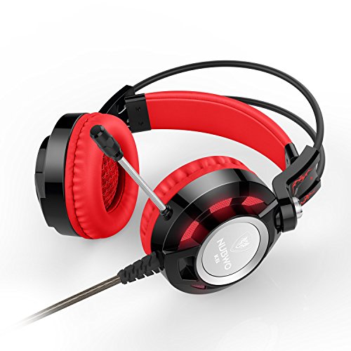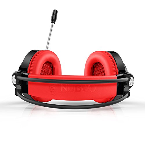 Headset, NUBWO Stereo Gaming Headset with Microphone, Over Ear Earphones Headphones with In-Line Volume Control, 3.5mm USB 2.0, 6.5 ft Long Cable, LED Lighting for PC /Laptop /Computer (Red)
