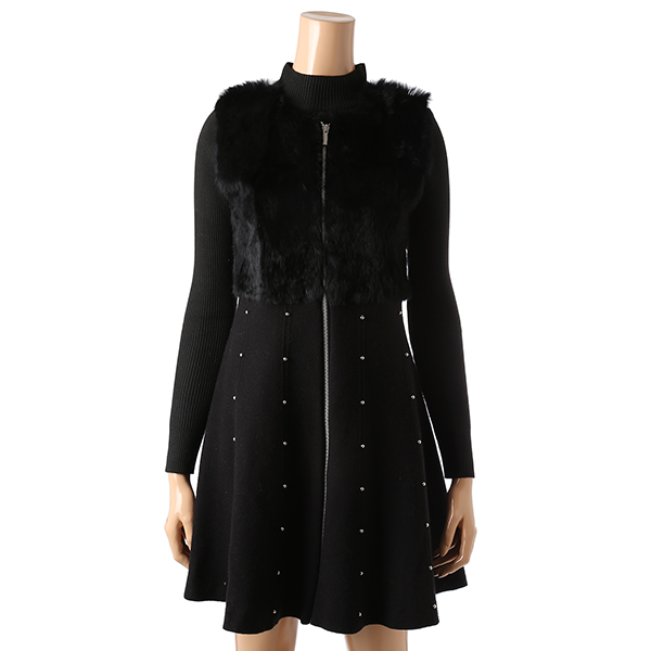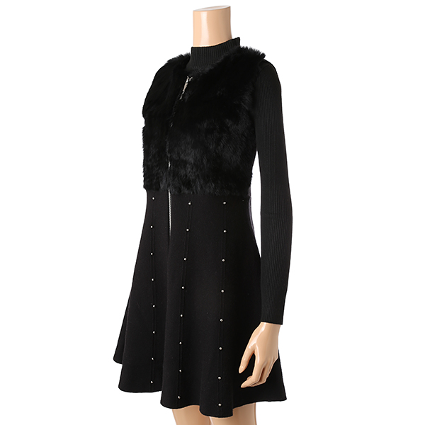 니트와 토끼털 배색이 고급스런 원피스형 베스트로