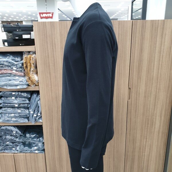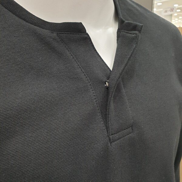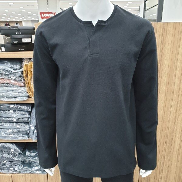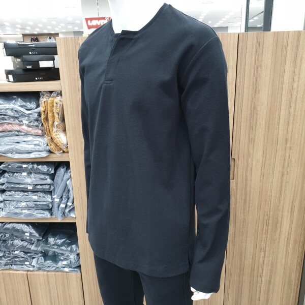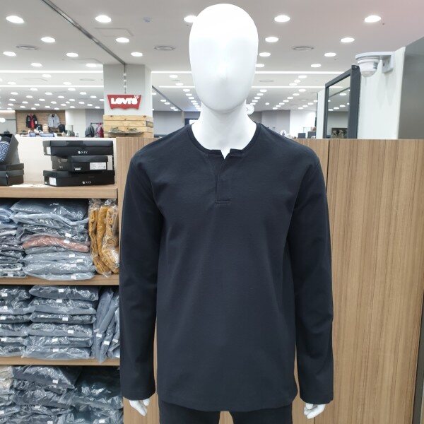 NIX 2019년 봄 신상 입니다. 앞넥부분이 자연스럽게 벌어진 형태로 꼬마스냅으로 오픈가능. 스판이 들어가 톡톡하고 편안한 티셔츠 입니다. 마네킹 100size 착용