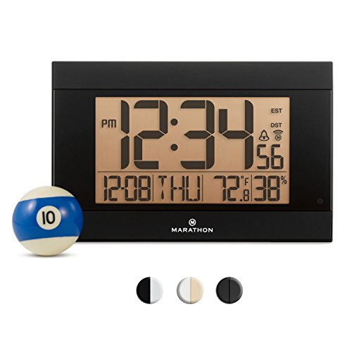 Marathon's Digital Wall Clock With Temperature & Humidity is part of the new elite line. Although it is wall mountable, it also features a fold out table stand. The large, wide-angle, easy to read display has an ambient light sensor, which triggers a soft backlight when it is dark. You can easily switch between 6 time zones (Pacific, Mountain, Central, Eastern, Atlantic & Newfoundland), choose from 7 languages (English, Danish, Dutch, French, German, Italian & Spanish) and select Fahrenheit or Centigrade for the indoor temperature display. Along with the time, day, date and indoor temperature, this clock also displays indoor humidity. The CL030052 Digital Alarm Clock with Temperature & Humidity makes an excellent wall or desk clock and with an alarm and snooze function is also great as bedside alarm clock.Feature