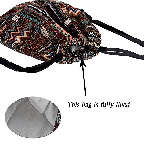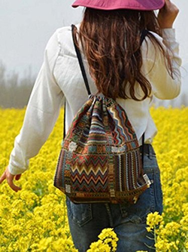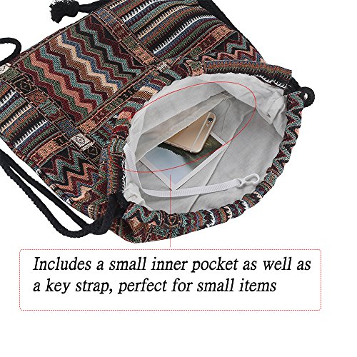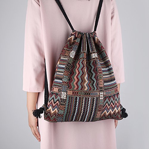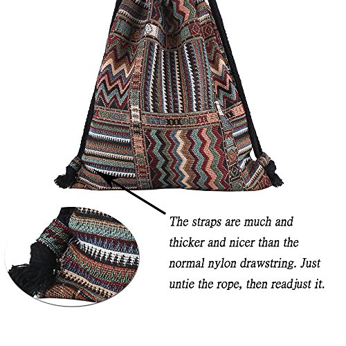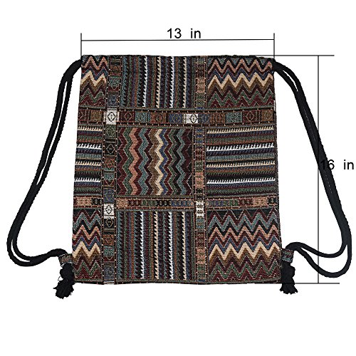 Farway Drawstring Bag Canvas Knit Beach Vacation Hawaiian Bohemia Boho Gym Outdoor Sports Travel Backpack for Unisex Girl Woman Female