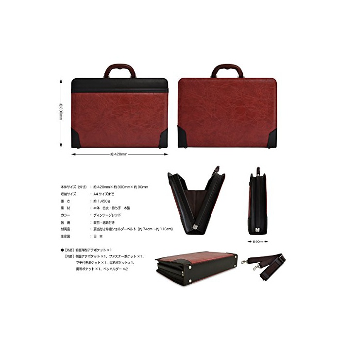 Asoboze 【AVECALDO 고급 비즈니스 가방 맨즈 】 일본제 A4 출장건 포함 AV-E001(빈티지 레드)