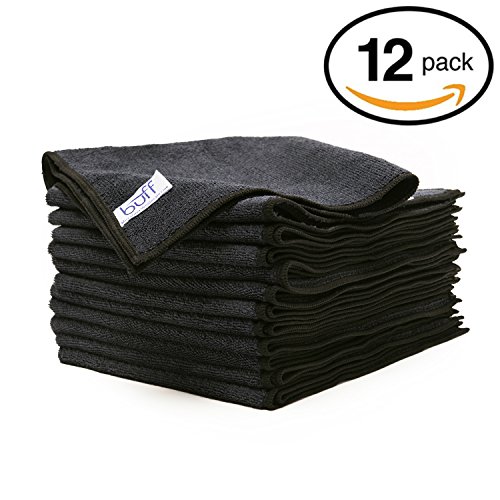 Black Microfiber Cleaning Cloths | Best Towels for Dusting, Scrubbing, Polishing, Absorbing | Large 16" x 16" Buff Pro Multi-Surface Microfiber Towel