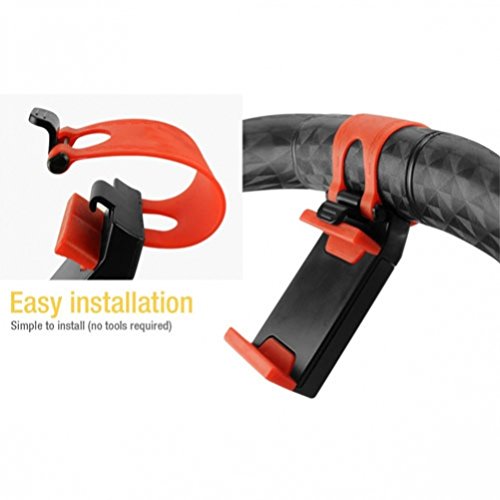 -. Feature : Fonus Car Steering wheel mount. It is a smart buckle, Lightweight, just strap around the steering wheel without any tools within minutes, safe and secure. / Easy Installation, No need of extra tools, just clip the mount to your steering wheel in a second. / POCKET SIZED - Weighs under an ounce and small enough to fit in your pocket. / With elastic fixation rubber band, it fit for any size of steering wheel. / Anti-slipping soft silicone inlay holds your phone securely and protects device from scratching. - Provides great convenience for your device's interactive features during driving or stop.