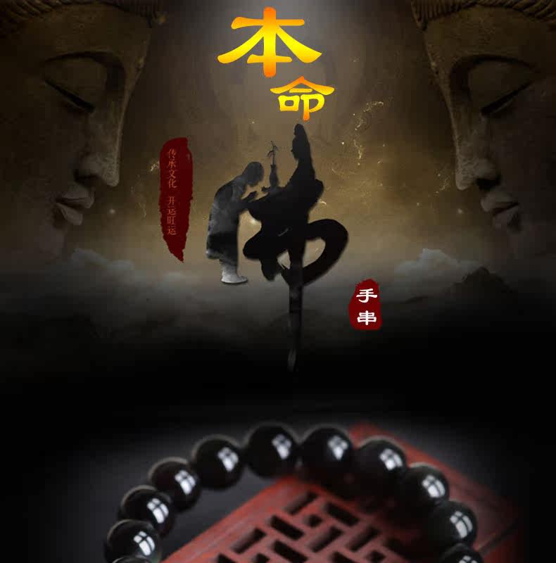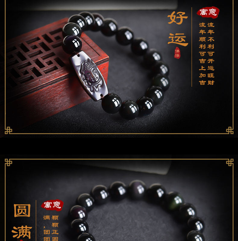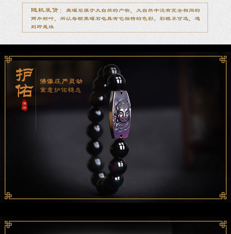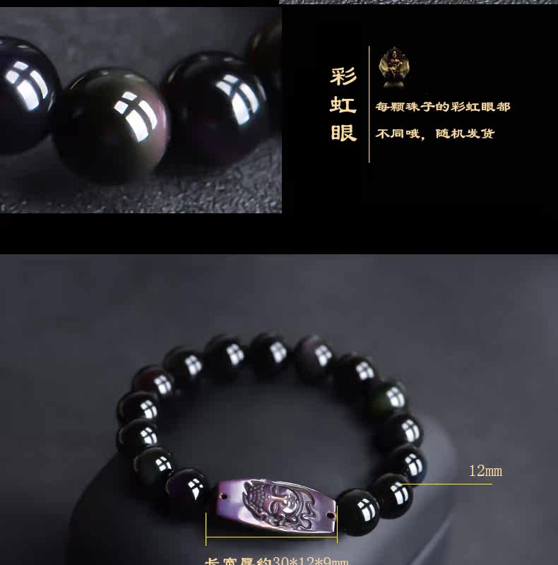 开光天然彩虹眼黑曜石大日如来菩萨手链生肖属羊猴本命佛男女手串