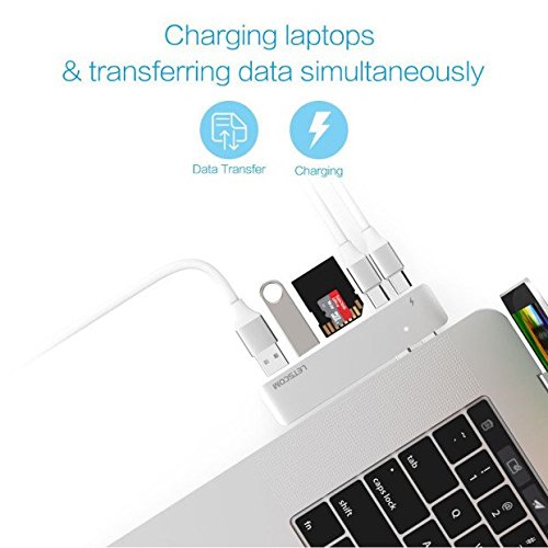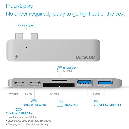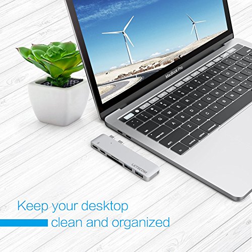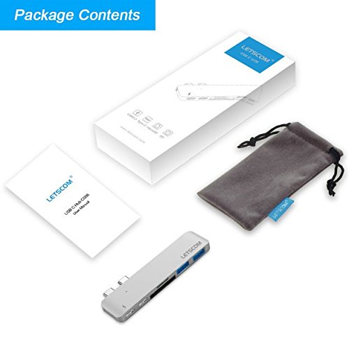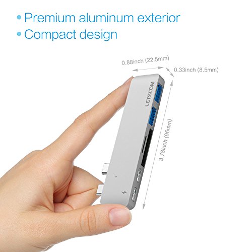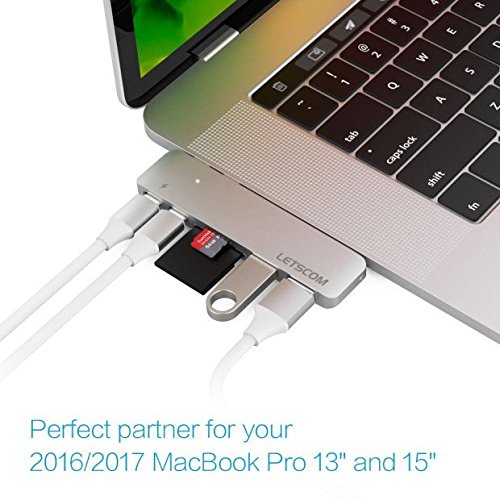 USB C Hub, Letscom Aluminum Type-C Hub Adapter for MacBook Pro 13" and 15" 2016/2017, Thunderbolt 3 Port, USB-C Port, SD and Micro SD/TF Card Reader and 2 USB 3.0 Ports