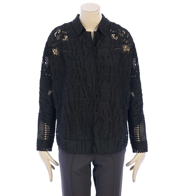 VOV, 레이스가 전면에 사용되어 로맨틱한 감성을 자아내는 박시핏 롱블라우스입니다