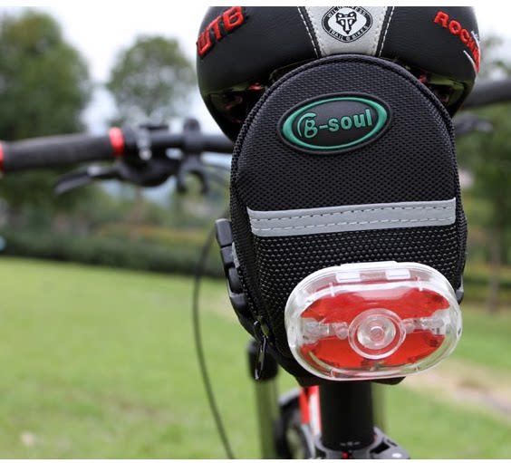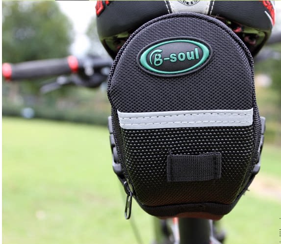 【颜色】黑色 【颜色】长20CM,高8CM,宽6CM 【品名】自行车座垫包 ● 面料为用高密度600D,带反光条,款型好; ● 可长方形设计,扁长设计车座底的自行车使用此包也不易碰到轮胎; ● 快拆型绑带设计,适合众多车座; ●包后侧可挂尾灯,结实耐用方便实用