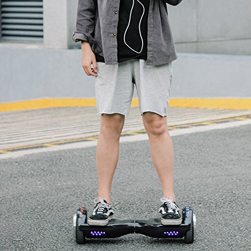 High quality:self Balancing Scooter has a solid boardy,two 6.5" all-terrain aluminum alloy wheels,12Km/hr Max Speed and 220lbs Max Weight.Silicone non-slip foot pedals.