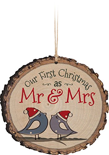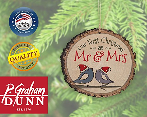 Our First Christmas As Mr. And Mrs. Birds Rustic Bark Look Wood Christmas Ornament