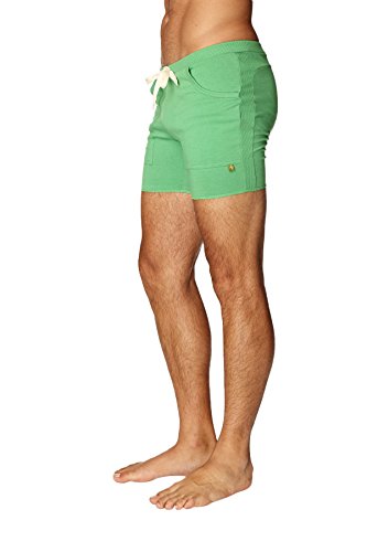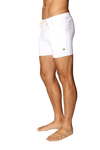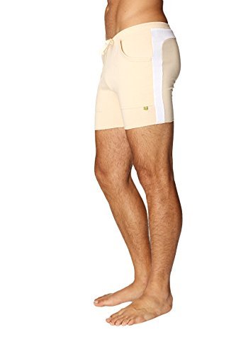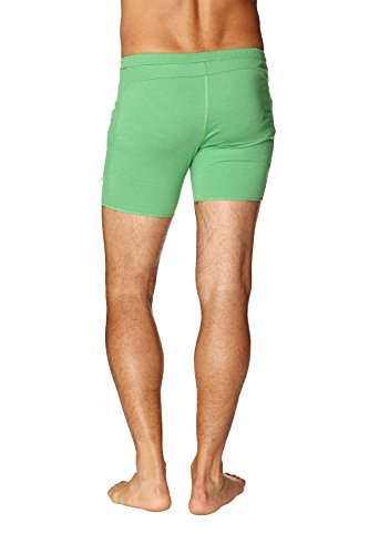 These light-weight Modal (Birch Tree fiber) Mens Transition Yoga Shorts are a "hybrid" short merging the distance between our two most popular shorts -- the Fusion Short and the Eco-Track Short. These French-Terry mid-thigh shorts are meant to be form-fitting yet still provide the convenience of front pockets that are sewn on TOP of the garment so they do not bunch up inside the short, nor float about. There is 1" of 2x1 RIB piping that extends uninterrupted from the sides up above the rear-end -- providing exceptional stability flexibility for stretching strenuous workouts. Criss-cross stitching in bamboo green on the drawcord tips -- which is 1/2" tubular draw cord. Perfect for tightening the shorts if needed, while the elastic waistband provides relaxed comfort. Ideal for all sports including Yoga, Hiking, Climbing, and Crossfit Training. SIZING: For size SMALL you could be up to about 5'10. They have a 5" inseam. For the normal, athletic build, you would achieve the "model-type" look if you are 5'8 140lbs or 5'11 155lbs. If you have a heavier build or want a more "relaxed" fit, then go one size UP. Following are the ranges for sizes S, M, L SMALL:28-30" waist, 5" Inseam. MEDIUM:30-32" waist, 6" Inseam. LARGE: 32-34" waist, 7" Inseam. {Inseam: the length from crotch to hem} For any CUSTOM-orders of any sizes/colors please contact and order DIRECTLY via 4-rth.com. THANKS for checking us out!!! 0 |