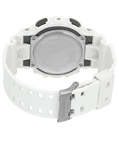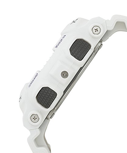 With an extra large case and ultra durable construction, the Casio Men's G-Shock X-Large Sports Watch offers modern technology in a stylishly rugged design. The textured, white dial features both analog and digital displays, embossed, luminous indexes that give a 3-D effect, and wide, blue hands with cut-out details. This bold watch offers a variety of functions, including World Time with 29 time zones, five alarms, stopwatch, countdown timer, 12- and 24-hour formats, and day, date, and month information. A strong, white resin band wraps comfortably around the wrist and fastens with a buckle clasp for an adjustable fit. Able to stand up to extreme environments with its shock resistant technology, anti-magnetic structure, and water resistant depth of 660 feet (200 meters), this attention-grabbing timepiece is ideal for independent and active adventurers.Feature