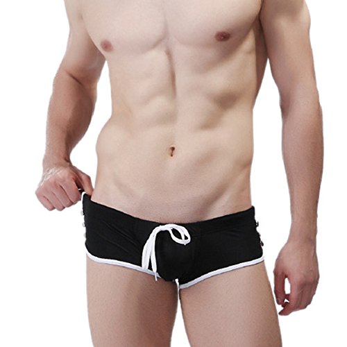 -. Title : Men's swimming pants with low waist sexy side rivet tether swim trunks,L,Black