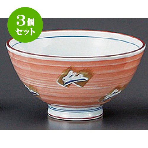 원본상품명: 3個セット 飯碗(磁器) 白磁はねうさぎ 赤中平茶碗 [116 x 62mm] 和食器 料亭 旅館 ?食店 業務用