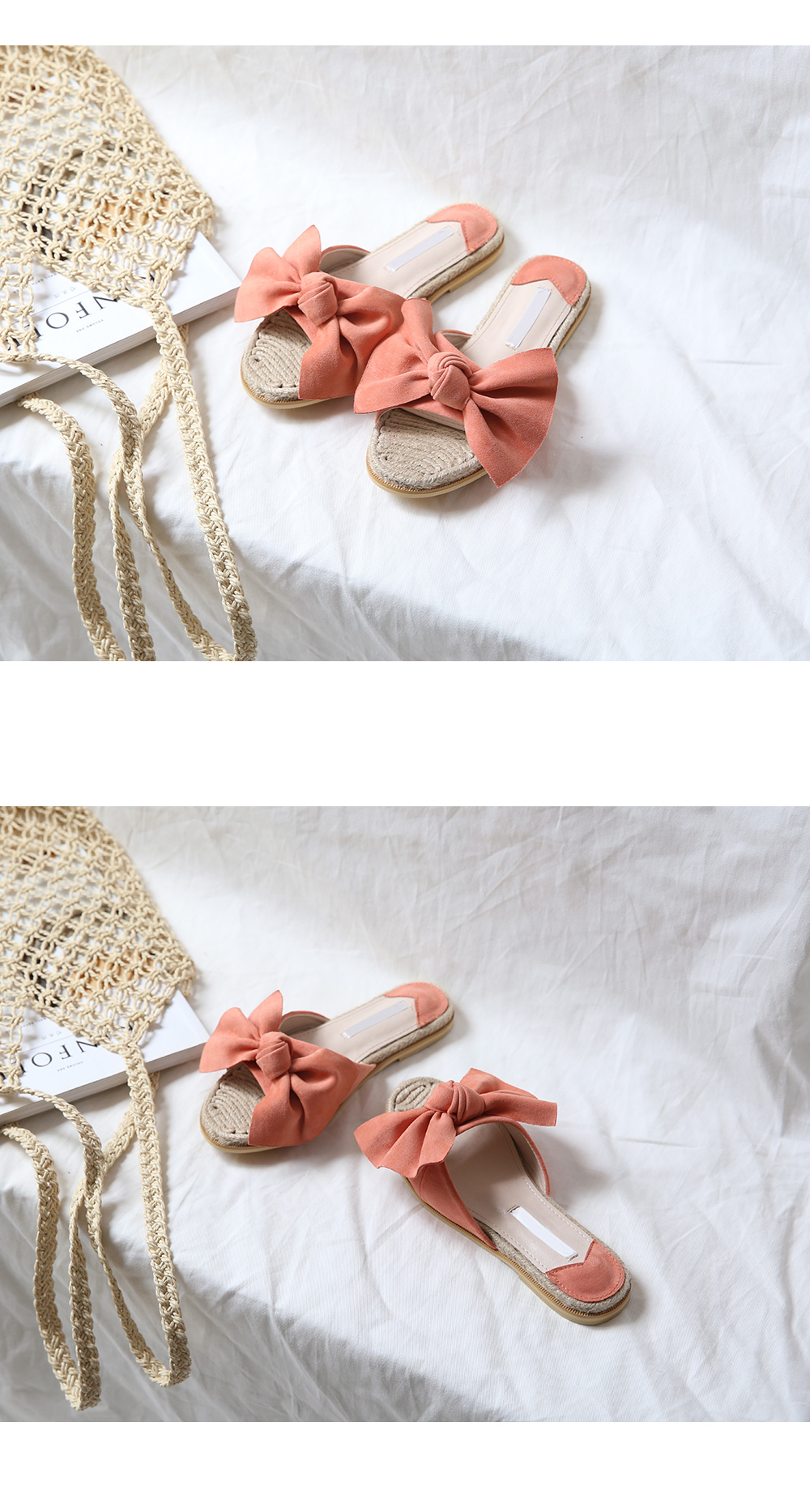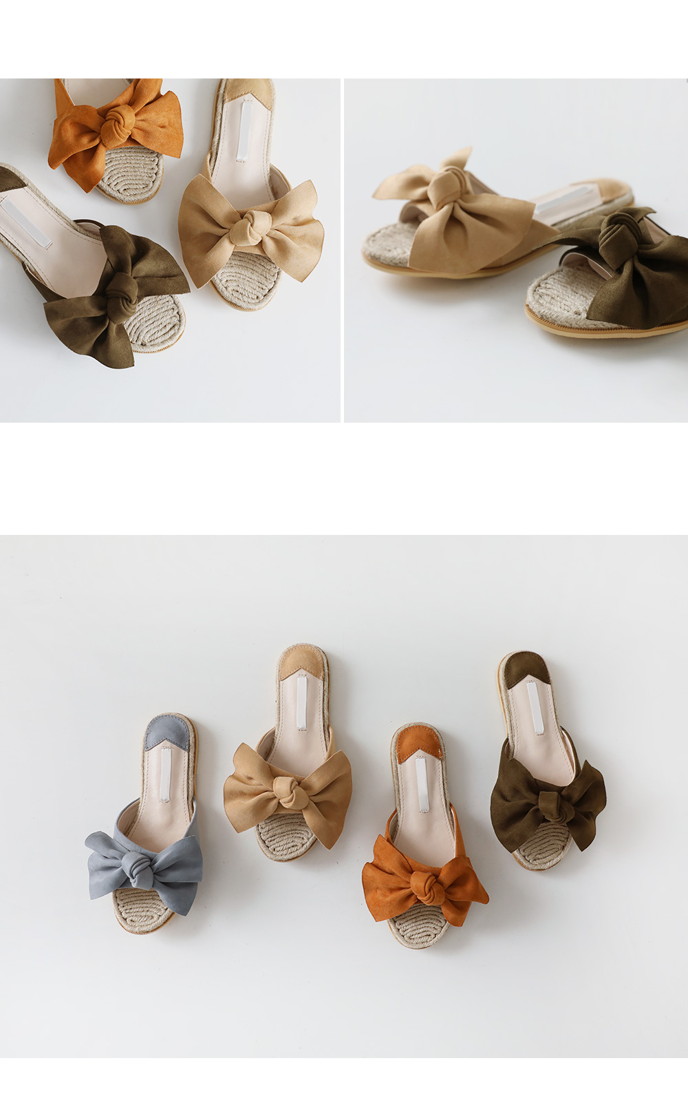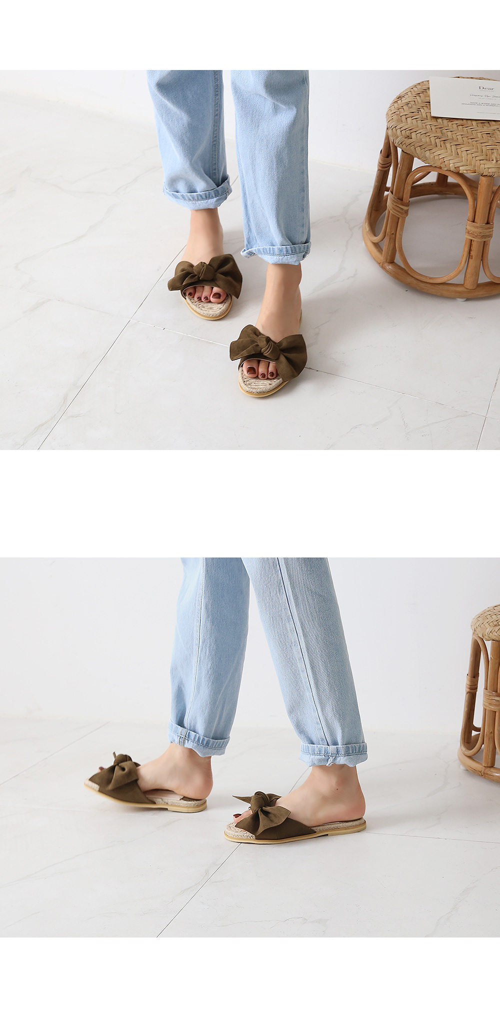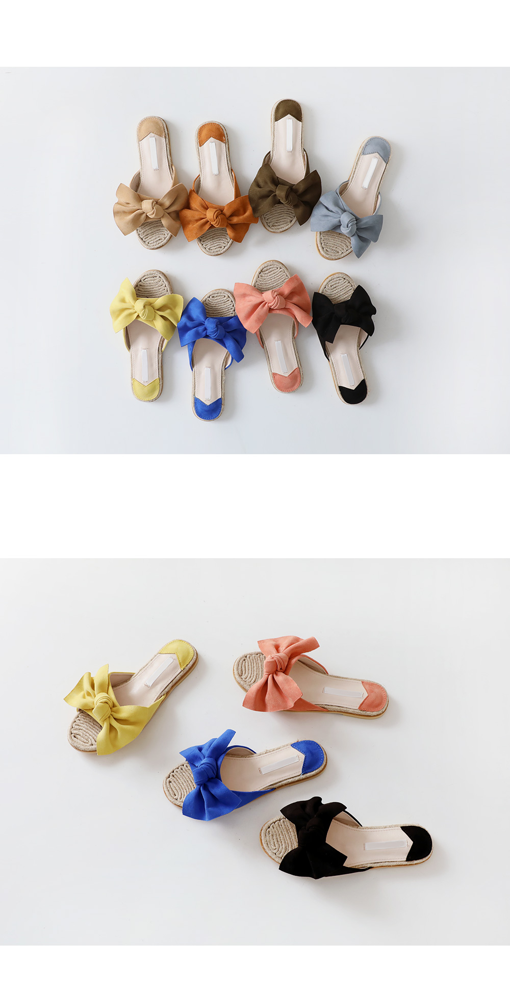 발등 전체를 감싸는 큰리본이 매력적인 슬리퍼입니다.