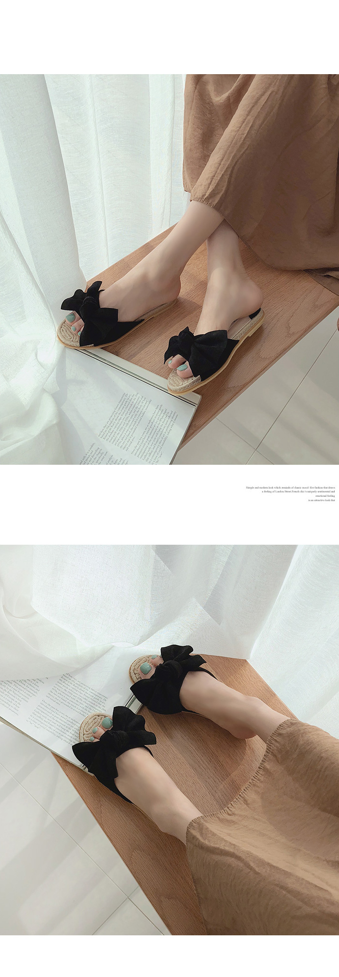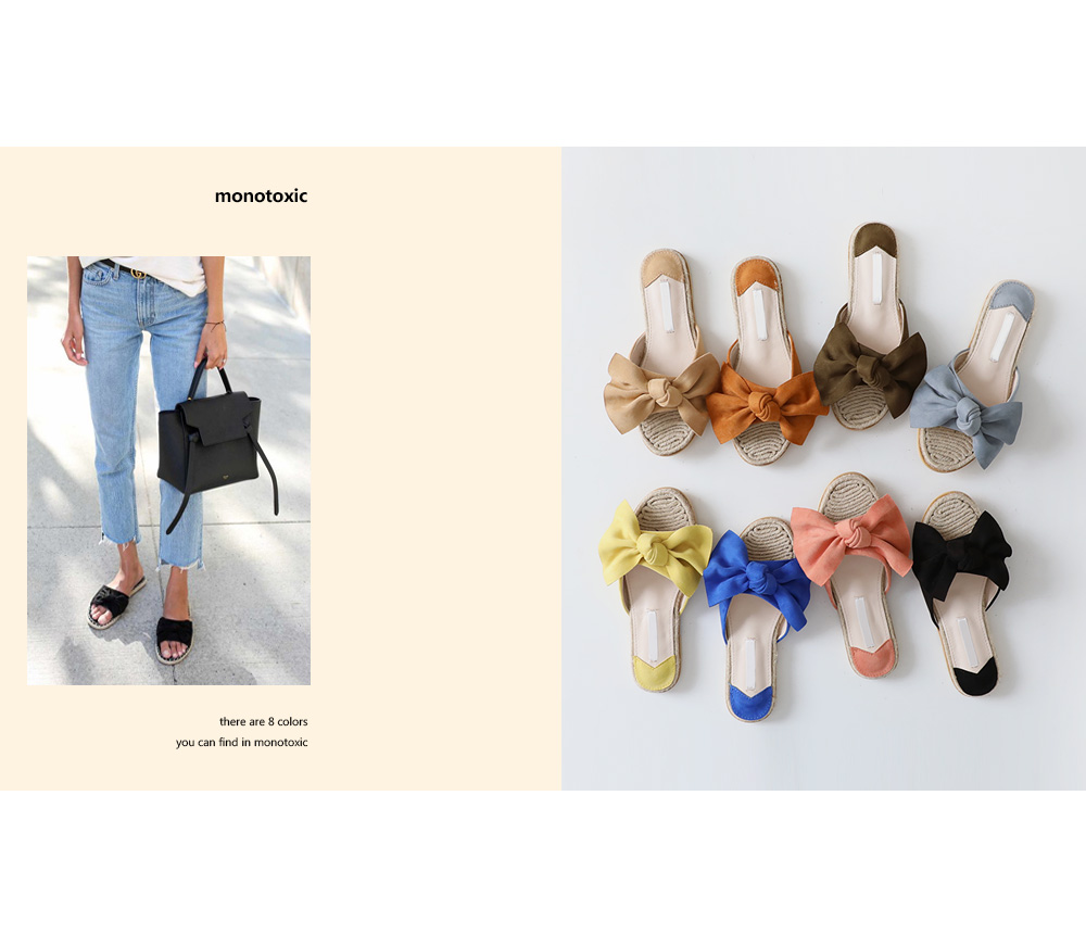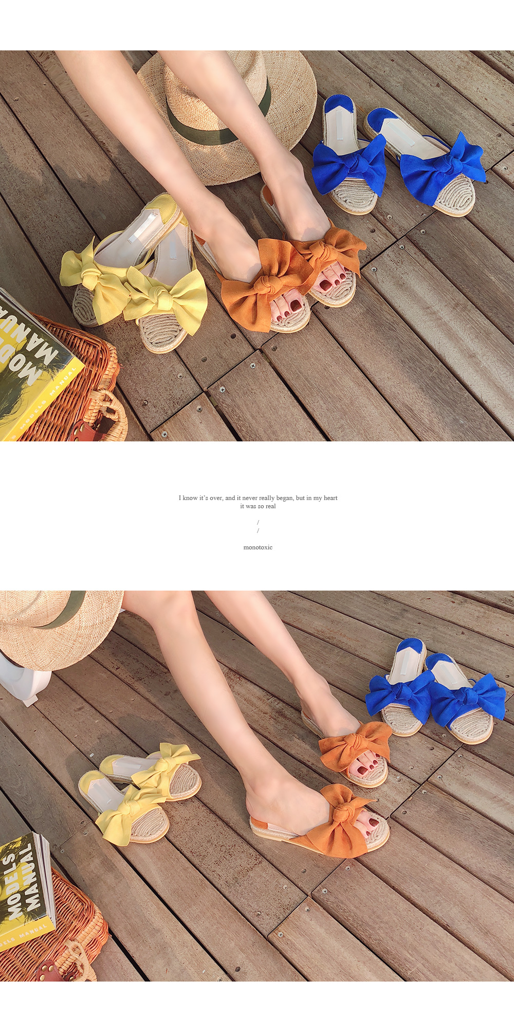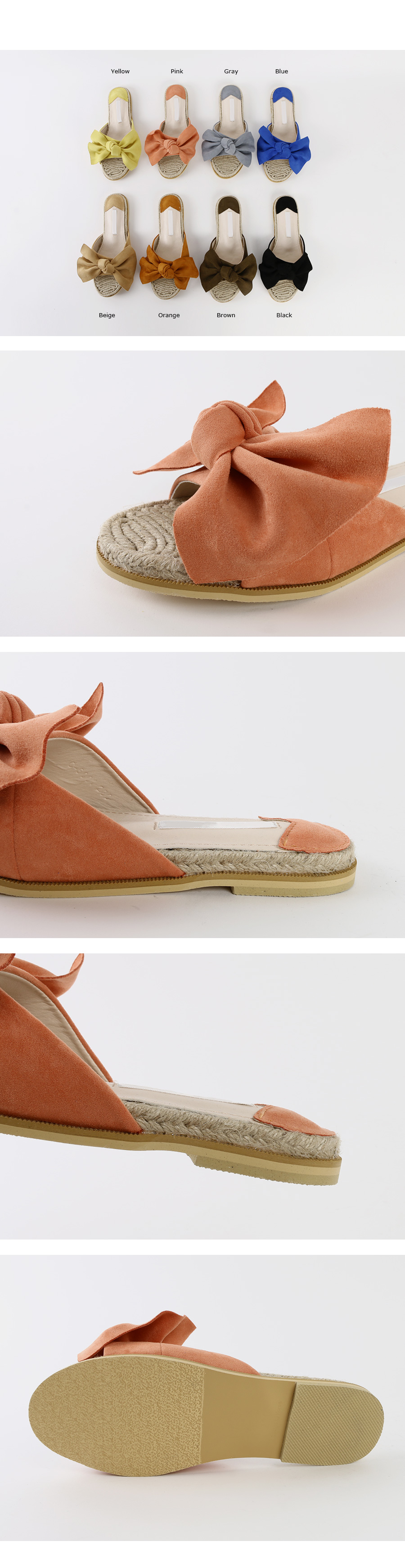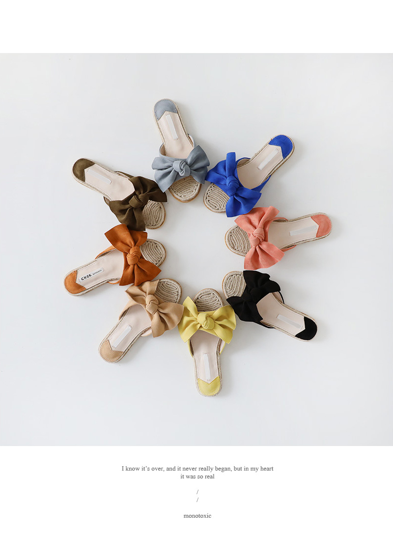 발등 전체를 감싸는 큰리본이 매력적인 슬리퍼입니다.
