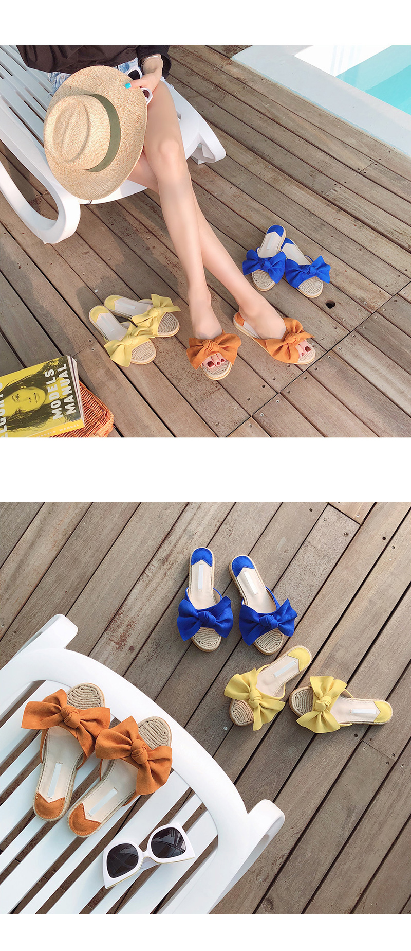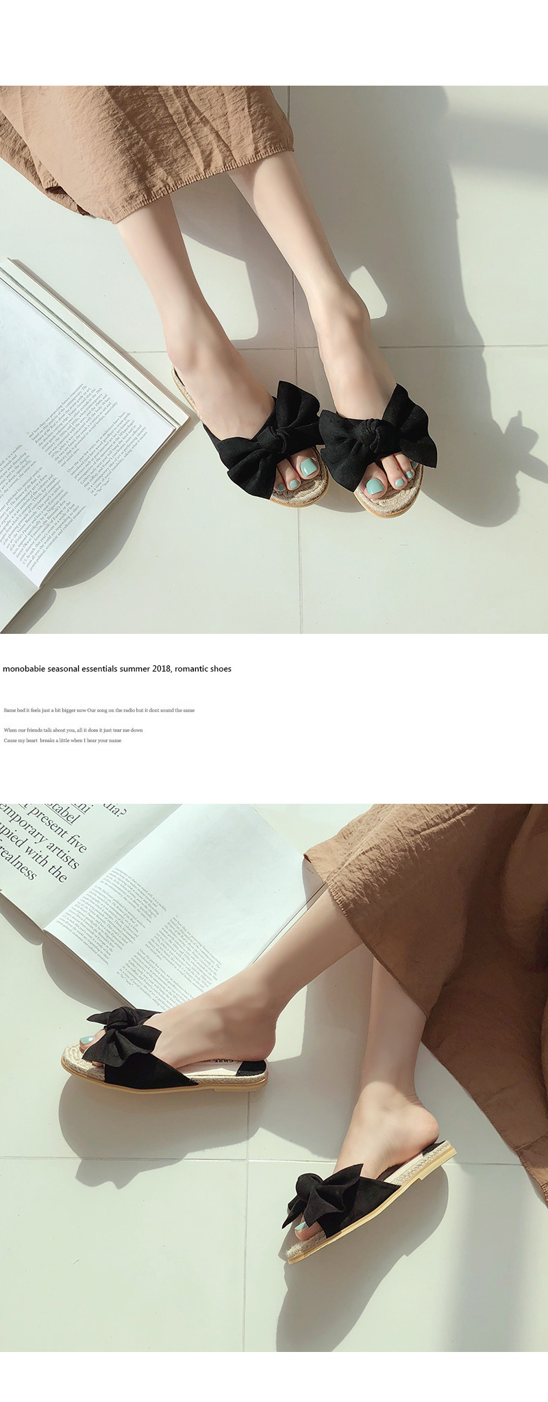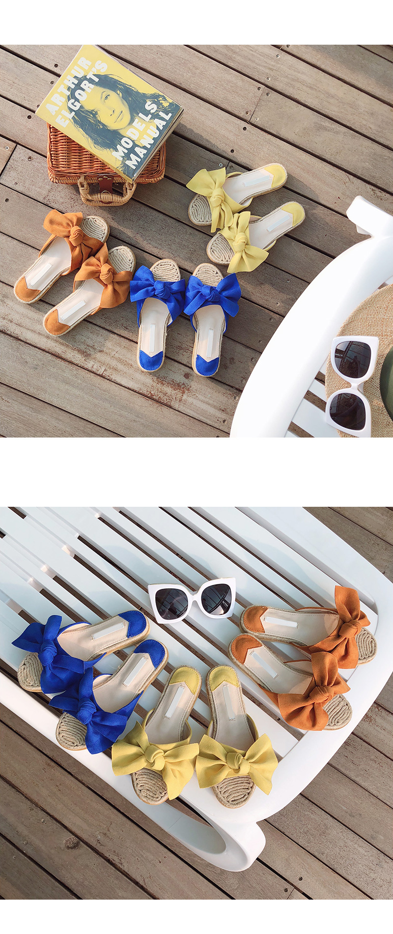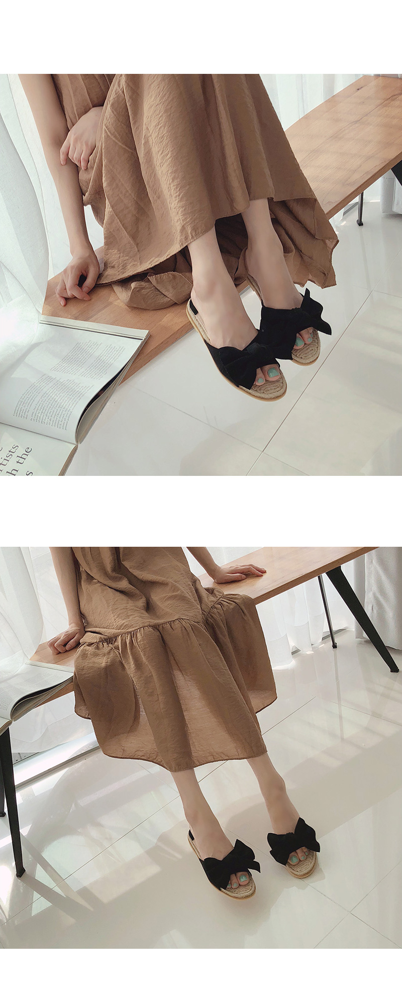 발등 전체를 감싸는 큰리본이 매력적인 슬리퍼입니다.