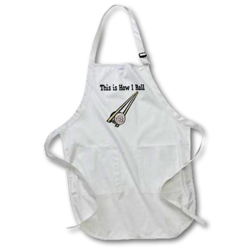 3dRose apr_102541_1 This is How I Roll Sushi Rice Roll Full Length Apron with Pockets, 22 by 30", White