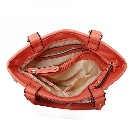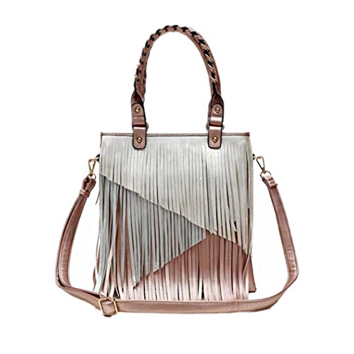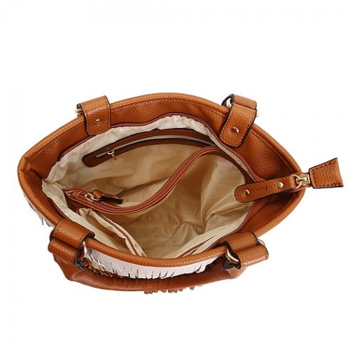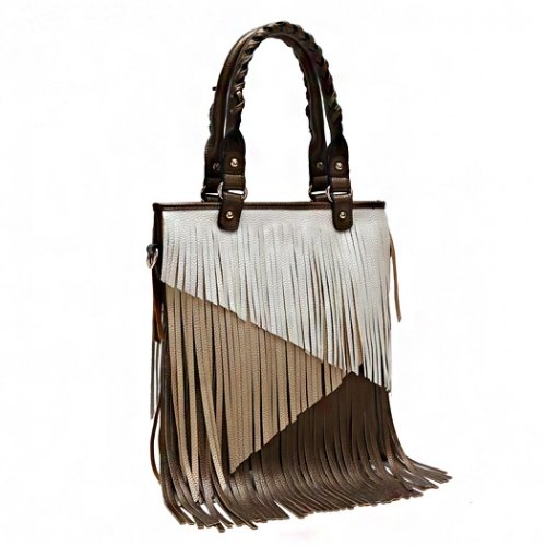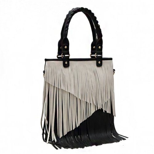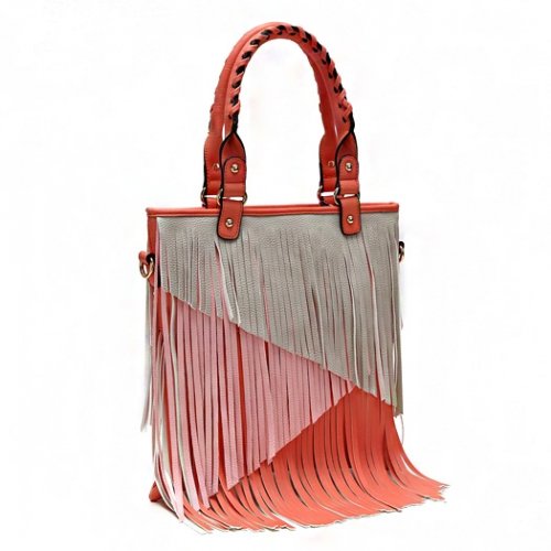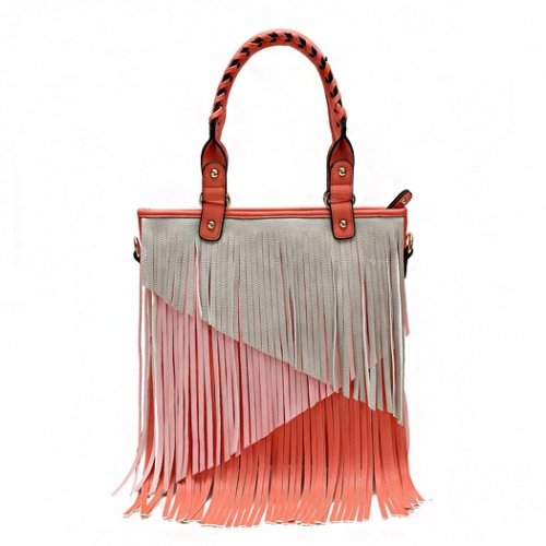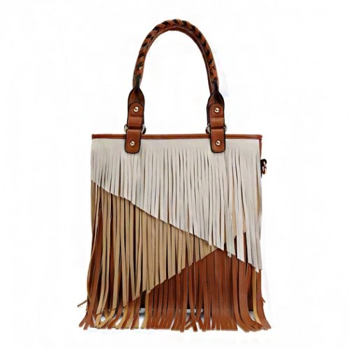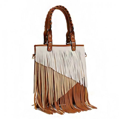 -. Title : Multi Tones Two Layer Fringe Women's Tote Handbag with Crossbody Strap