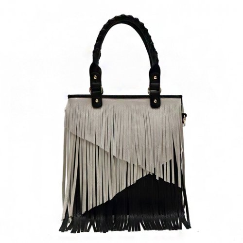 -. Feature : Multi Tones Two Layer Fringe Women's Tote Handbag with Crossbody Strap. / Handbag Size:12.5"(L) x11.5"(H) x1"(W). / Split 2 Compartments Inside, cellphone pocket, deep pocket with zipper, zipper closure. / 7 colors synthetic leather fringe handbag. / 24 hours handling.