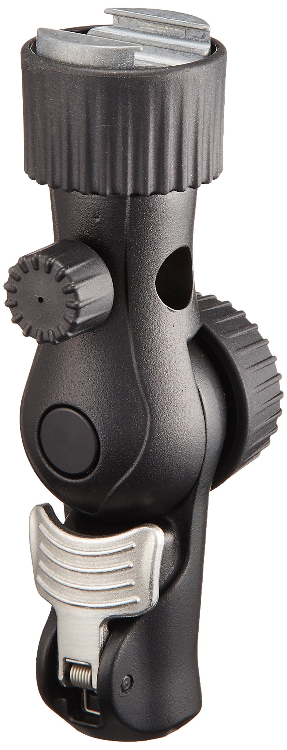 Clip-on multi-purpose tilt head that can be fitted with strobe and umbrella.
