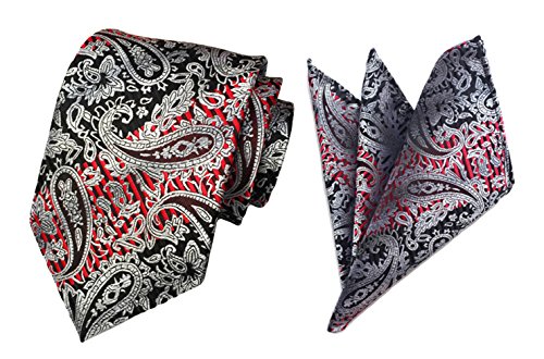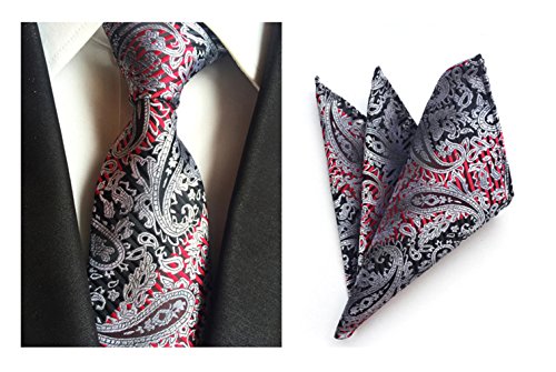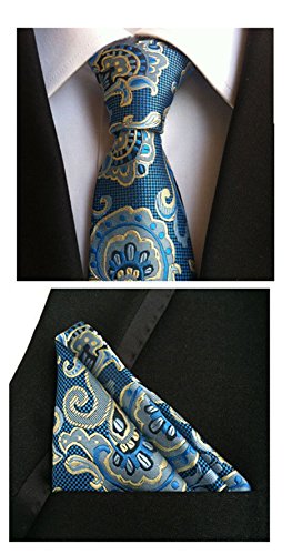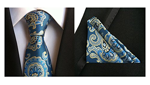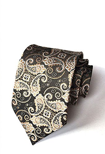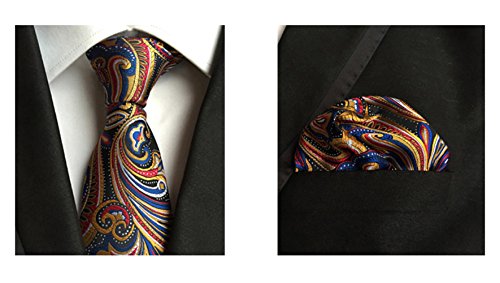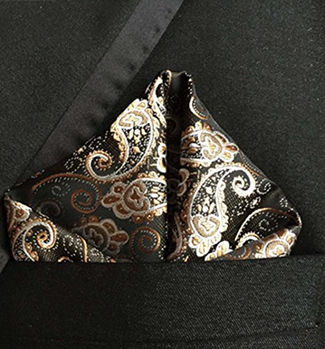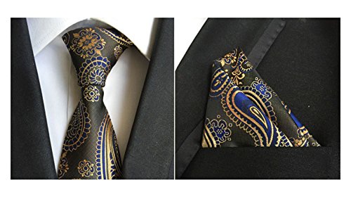 MENDENG Men's Gold Black Paisley Silk Necktie Formal Ties Hanky 2 Pieces Tie Set