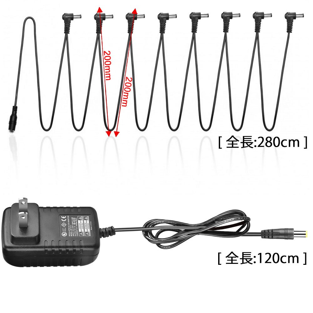 Plug shape: 2.1 mm DC female × 1 / 2.1 mm DC male × 8