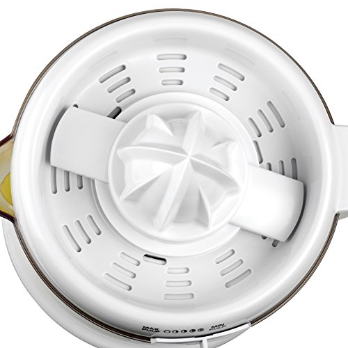 20-watt electric citrus juicer with 32-ounce capacity, Auto reversing reamer and stirrer for maximum juice extraction