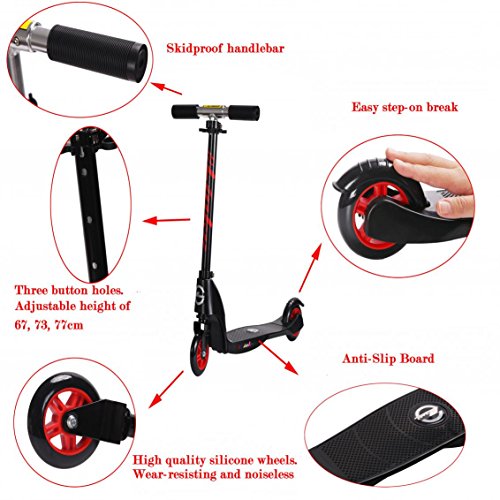 Specifications: Wheel Diameter: 10cm Wheel Material: Premium silicone, no noise. Brakes: Rear Fender Handlebar Height(wheel to handlebar): Adjustable. Maximum Rider Weight: 50KG Folder Dimensions: 52cm L x 10.5cm W x 16cm H Packaging: Customized Box