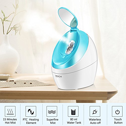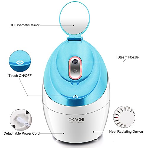 - Powerful & Consistent Steam:Generates full-powered steam in about 30 Seconds. Advanced nano ionic atomizer silently & effectively turns clean water into micro-fine particles to produce a powerful, consistent mist. Moisturizing effectively, improving skin nutritional absorbency, relieving sinuses and cleansing pores. Skin feel refreshed and maintain a beautiful natural-looking.
