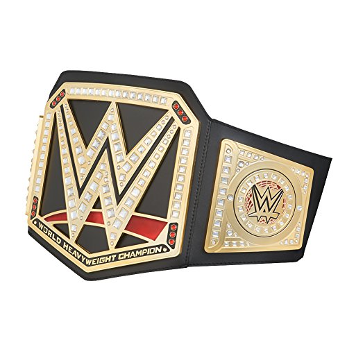 - Feature : An adjustable waistline for waists up to approximately 38" / Center and side plates feature soft enamel (plastic) finished with gold plating replicating the shine and prestige of the WWE World Heavyweight Championship Title / Official WWE Merchandise - Made and licensed by WWE / Replicated with acrylic rhinestones / Secured by an all new sewn-in velcro patch
