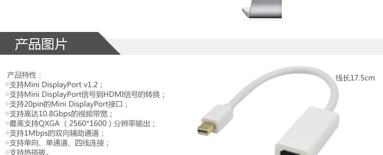 本产品是一个转接头,长度为17.5CM,需要配合HDMI线才能使用。