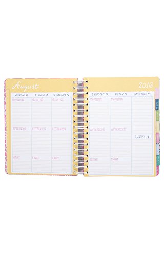 -. Feature : Hard cover for durability / Gold leaf cover accents / Navy elastic band / Sticker reminder tabs / 17 month Agenda ( August 2016 through December 2017 )