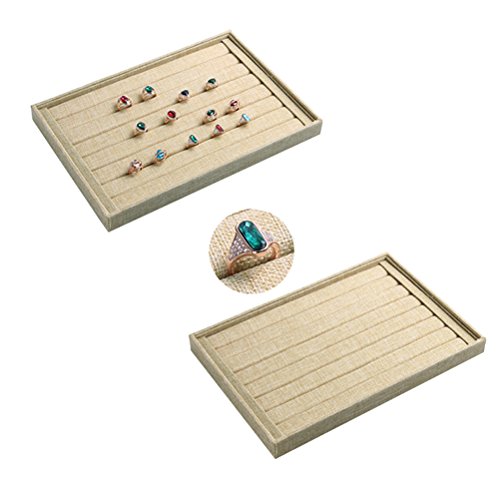 Valdler Sackcloth Stackable 7 Slots Ring Earring Tray Showcase Display Organizer
