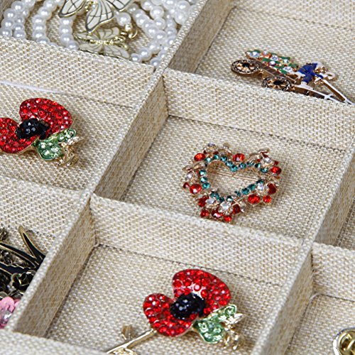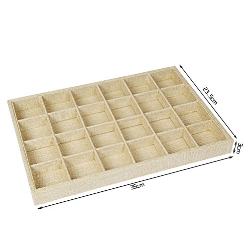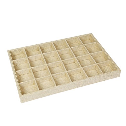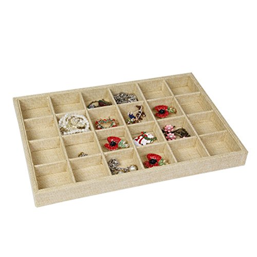 Valdler Sackcloth Stackable 24 Grid Jewelry Tray Showcase Display Organizer