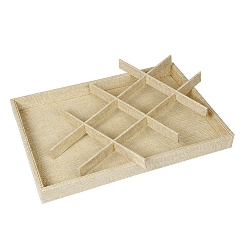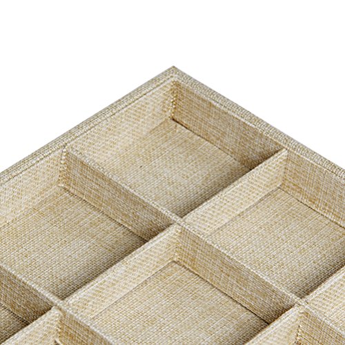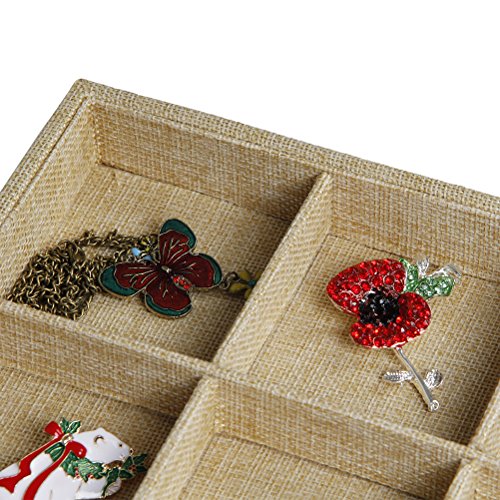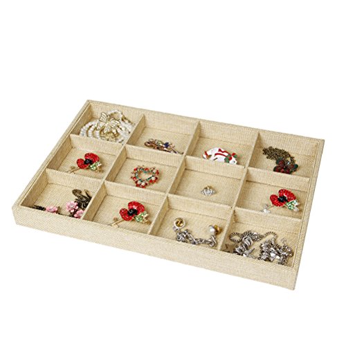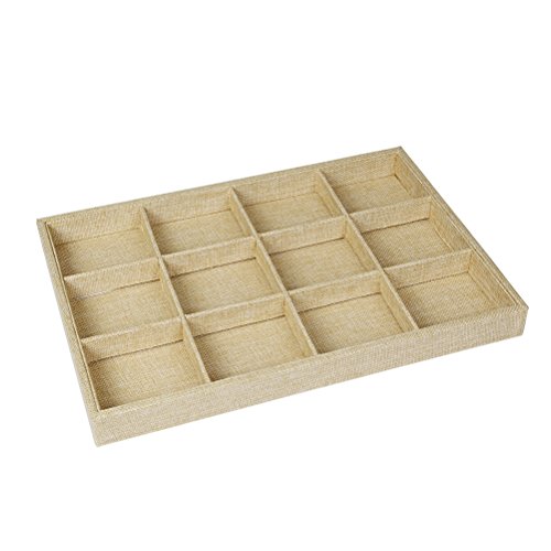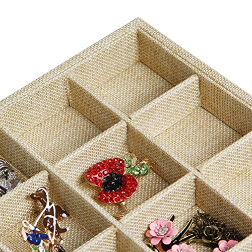 Valdler Sackcloth Stackable 12 Grid Jewelry Tray Showcase Display Organizer