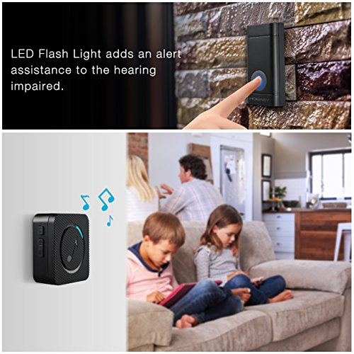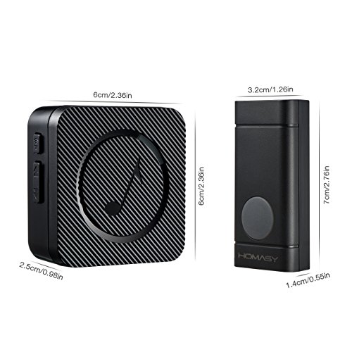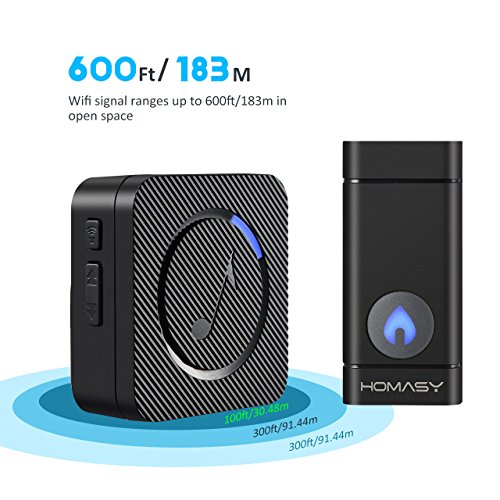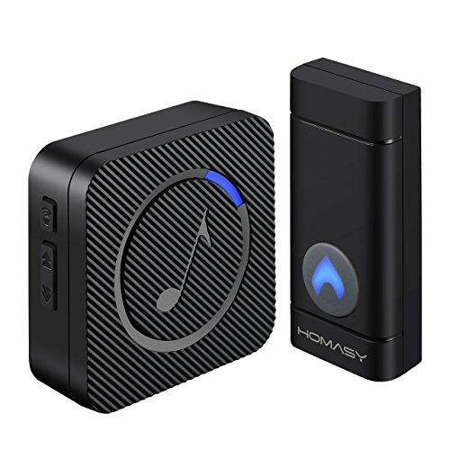 Homasy Wireless Doorbell Waterproof Door Bell Kit, 52 Chimes with 600 Feet Operating, 4 Level Volume, 1 Receiver & 1 Push Button with Sound and LED Flash (Black)