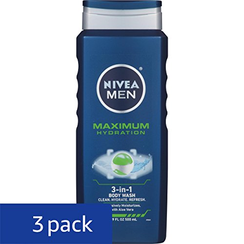 NIVEA MEN Maximum Hydration 3-in-1 Body Wash with Aloe Vera, 16.9 oz Bottle (Pack of 3)