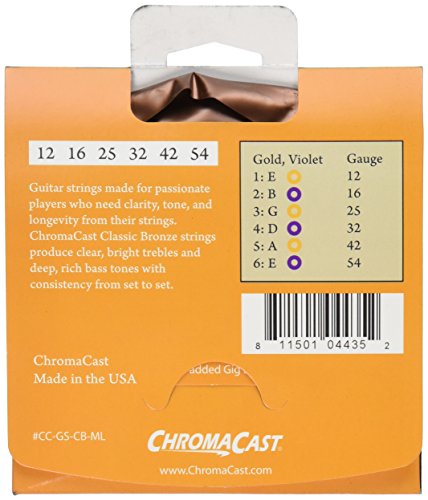 ChromaCast CC-GS-CB-ML-8PACK Classic Bronze Medium-Light Acoustic Guitar Strings, .012-.054, 8-Pack