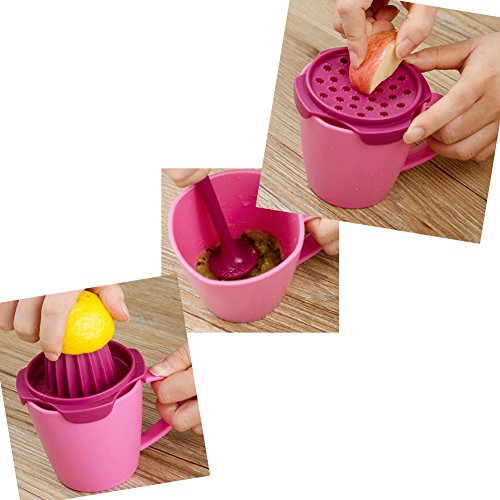 -. Feature : 100% satisfaction guaranteed. / Making the kitchen fun for all ages. / Product size: 12.3x14.5x10.2cm. / Hand (manual) juicer, Plastic construction. / With juice, grinding, dolly three big functions.