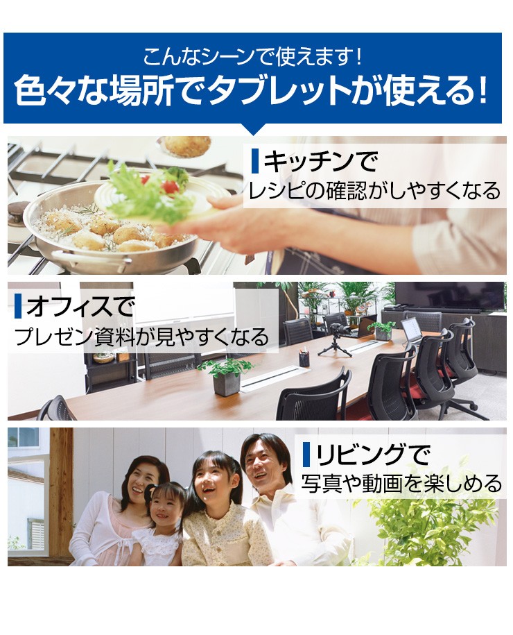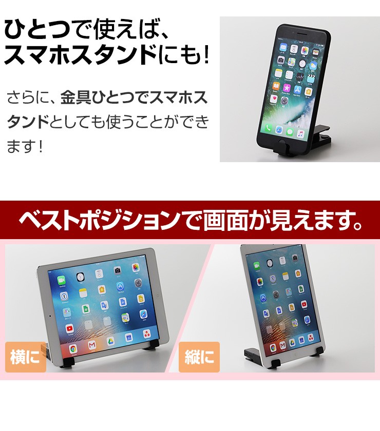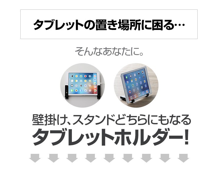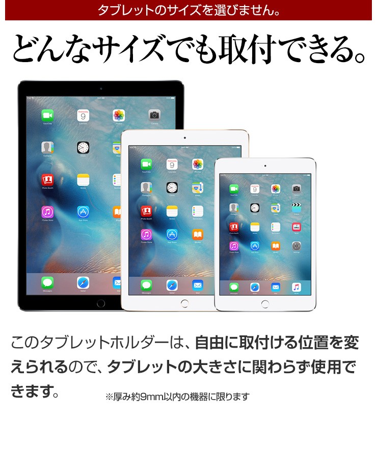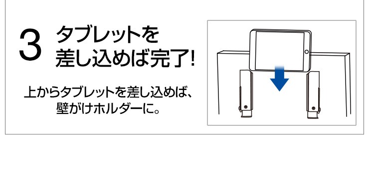| 注意事項 | ※予め使用するタブレットが本製品にスムーズに入るか確認してください。無理な挿入は破損に繋がる恐れがございます。 ※ネジの長さが16mmございます。それより厚みのある箇所へ取り付けてください。 ※本製品を使用の前には機器のデータのバックアップなどを取ることをお勧めいたします。弊社では本製品を使用したことによるデータの消失や故障など一切の責任を負いかねます。 ※製品の製造工程において軽微な擦り傷、若干のメッキムラが生じてしまう場合がございます。 |