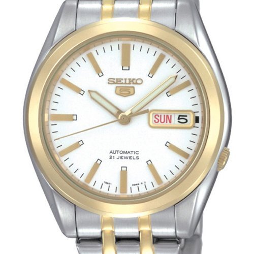 세이코import Seiko 세이코 Mens SNKG98 Seiko 세이코 5 오토매틱 오토메틱 White Dial Gold-Tone 스테인레스 스틸 Watch 남성용 맨즈 손목시계 (보통