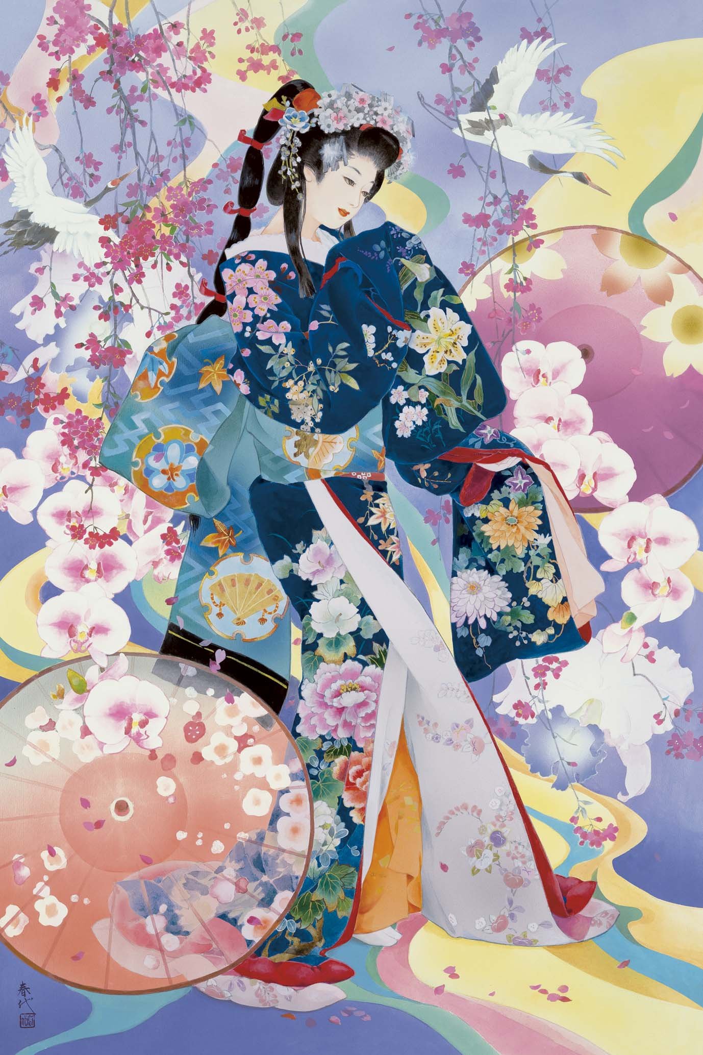 2016 Piece Jigsaw Puzzle Japanese Beauty Dance with Flowing Flower Cranes umbrella Small Pieces Puzzle (50x75cm)