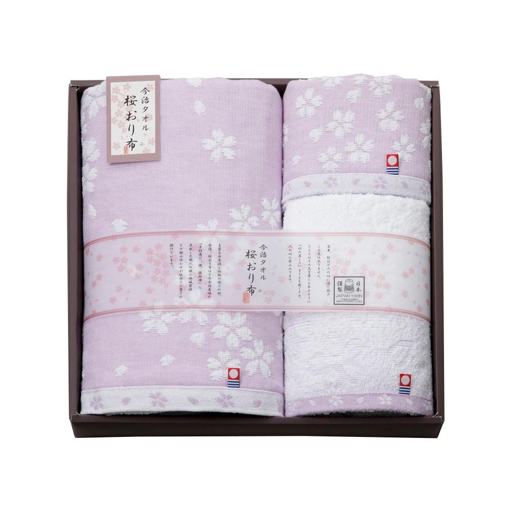 | 今治が得意とするジャガード織で美しい桜柄を織りあげた一品。 |