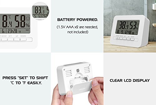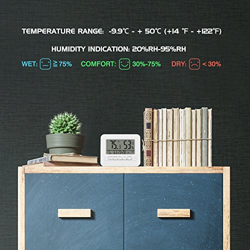 - EASY TO USE - Supports automatic measuring every minute. 3 different icons (Dry/Comfort/Wet) for comfort level indicator, easily view your room conditions.