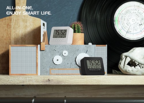 MoKo LED Digital Alarm Clock, Multifunctional Electronic Home Decor Desktop Table Bedside Clock Calendar, Snooze/Sleep/Kitchen Timer, Indoor Thermometer/Hygrometer with Backlight Monitor - WHITE