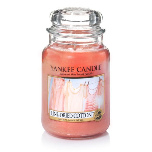 -. Binding : Misc. -. Brand : Yankee Candle -. Color : Pink -. EAN : 0886860257811 -. Feature : 110 to 150 Hours of Fragrance / A clean laundered fragrance mixed with a note of dewiness and a light floral breeze-the fresh scent of cotton drying in the sunlight. / The traditional design of our signature jar candle reflects a warm, relaxed sense of style that's always at home. / Premium-grade paraffin wax that delivers a clean, consistent burn. / Premium quality ingredients with natural essential oils create distinctive true-to-life scents. / Glass lab-tested to ensure the appropriate strength and consistency. 100% recyclable and accepted by most recycling centers. / Lead-free wicks, 100% natural fibers, and hand straightened to ensure it is centered for the best burn possible. / Made in U.S.A. -. IsAutographed : 0 -. Label : Yankee Candle Company -. Manufacturer : Yankee Candle Company -. Model : 1351640 -. MPN : 1351640 -. NumberOfItems : 1 -. PackageQuantity : 1 -. PartNumber : 1351640 -. ProductGroup : Home -. ProductTypeName : HOME -. Publisher : Yankee Candle Company -. Size : Large Jar Candle -. Studio : Yankee Candle Company -. Title : Yankee Candle Company Line-Dried Cotton Large Jar Candle -. UPC : 886860617042