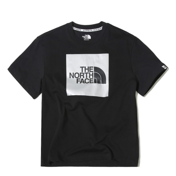 큰 박스형 눕시 로고 아트워크가 전면에 들어간 티셔츠입니다.